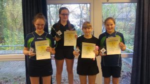 Bei den Mädchen 18 gab Alina alles, musste sich in einer starken Gruppe aber letztlich mit einem Satzgewinn zufrieden geben. Im Doppel lief es für sie allerdings besser, nach einem Sieg in der ersten Runde verlor sie mit ihrer Partnerin Jana Schomborg aus Ankum in fünf Sätzen und verpasste somit nur knapp einen Podestplatz. Lina machte derweil weiter wo sie am Vortag aufgehört hatte. Wie schon bei den Mädchen 15 gab sie bis ins Finale keinen Satz ab, dieses ging jedoch mit 1:3 an Amy Judge vom VfL Osnabrück die ebenfalls ein extrem starkes Turnier spielte. Das Doppel konnte Lina dann aber erneut gewinnen, zusammen mit Amy besiegte sie erneut die Paarung Hullmann/Derjue in fünf Sätzen.