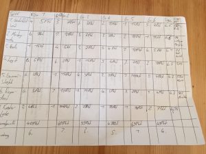 Als erstes war beim Eröffnungsspiel schon in der Scheune das Feingefühl der Athleten gefragt, sie mussten für Helmut in gegebener Zeit möglichst viele feinmotorische Spielchen lösen. Am Ende hatte die fünfte Gruppe, bestehend aus Lutz, Conny, Janis, Lara und Tobias die ruhigsten Hände und erreichten nach Helmuts Rechensystem überragende 230 Punkte.