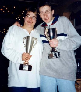 vor Manuela Razani. Das Spiel verlief verhältnismäßig glücklich und endete sehr knapp mit 3:2. Manuela holte sich dafür mit Ihrer Partnerin Marlies Galow souverän den Damendoppeltitel.