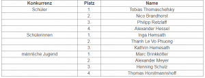 Bei der Jugend gewann doch sehr souverän Marc Brinkkötter, obgleich er vom Alter noch Schüler wäre.