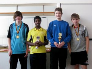 Da unsere 1. Jugend geschlossen nicht an der Jugendkonkurrenz teilnahm, ergab sich ein völlig neues Favoritenfeld. In einem spannenden Finale konnte ein überragender Kai Kampmeyer seinen 2. Titel dieses Tages gegen Murali Mohanarajah erkämpfen. Ein Schülerspieler setzte sich also gegen einen Jugendspieler durch.